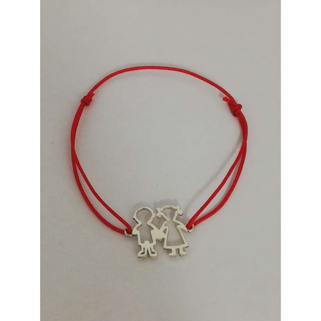 Гривна с регулируем шнур и висулка „Момче и момиче“ от сребро 925 (0.6 гр.) - символичен и деликатен аксесоар, подписан Jolie Silver, идеален за родители или баби и дядовци.