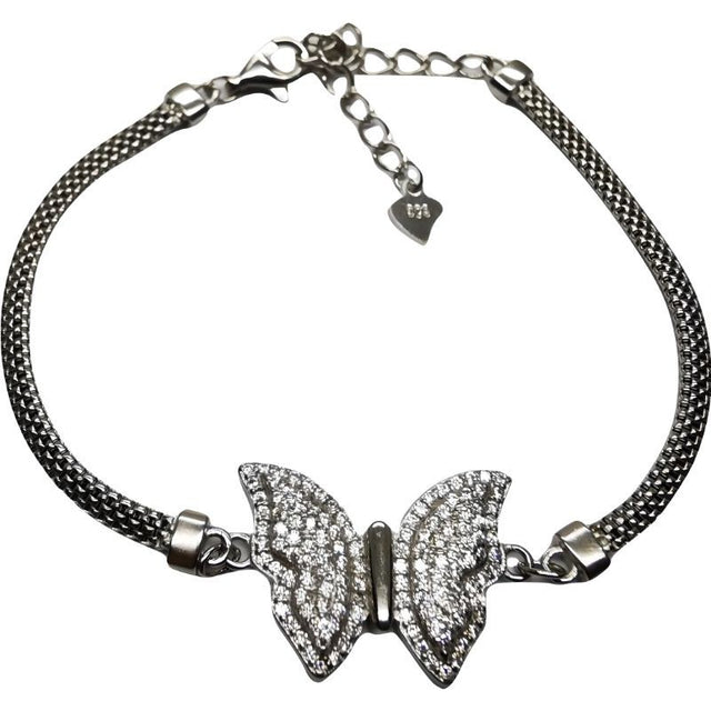Сребърна гривна 925 с голяма пеперуда и цирконий