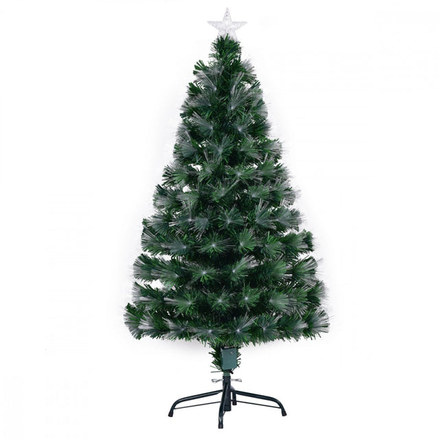 Изкуствена коледна елха от оптични влакна, 1,5 м, с включена метална стойка