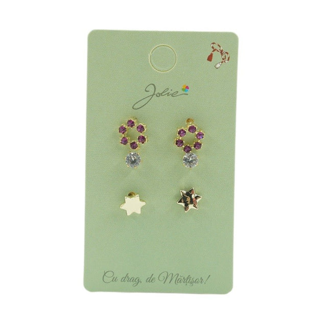 Комплект от 3 чифта обеци Кръг, Камък, Звезда
