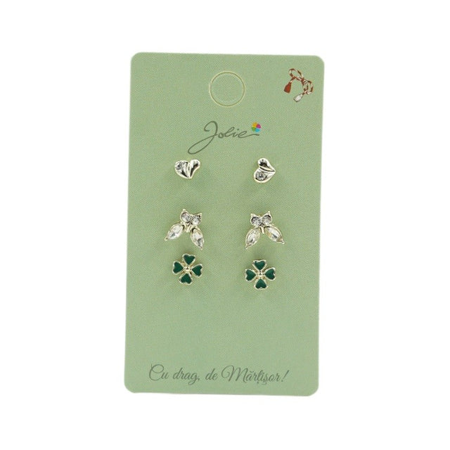 Комплект от 3 чифта обеци Сърце, Пеперуда, Детелина