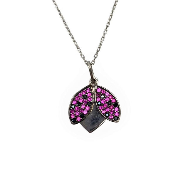 Сребърно колие 925, сърце с калинка с циркони 42 см - Розово Задържано е и ще бъде изпратено веднага щом е отново налично.