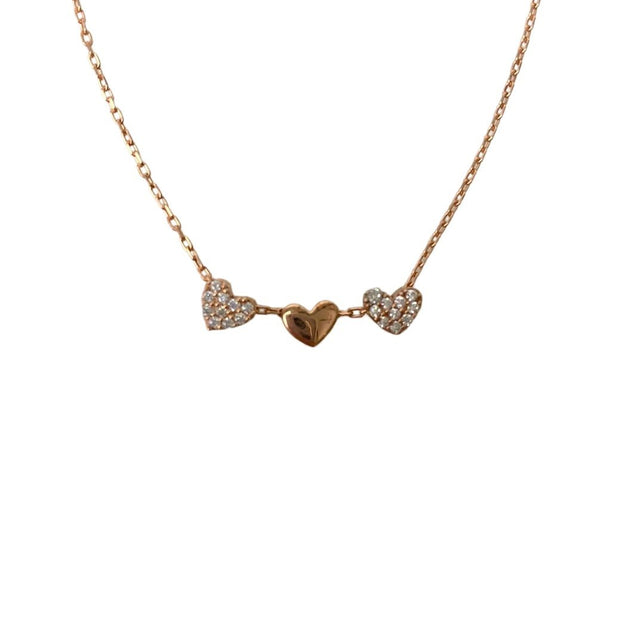 Сребърно колие 925, позлатени със сърца от розово злато, в подаръчна кутия бижута, заедно с гаранционния сертификат.