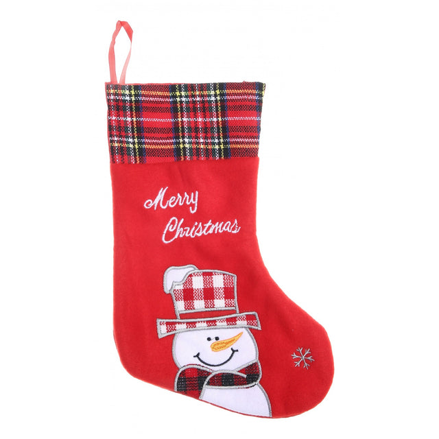 Подаръчен чорап, червен цвят, щампа на снежен човек, размер