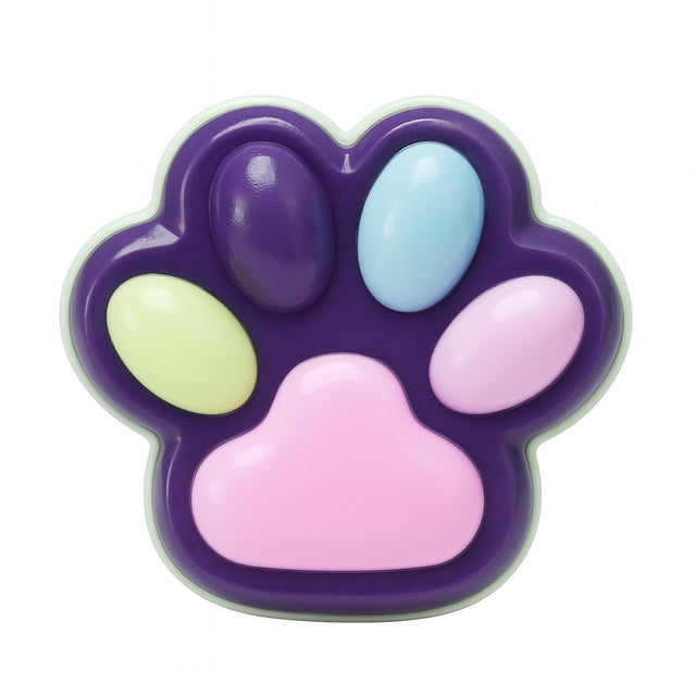 Мека антистрес играчка, бавно отскачаща, пухкава котешка лапа, 8,5 x 7,5 см, прозрачна опаковка, тъмнолилаво-розово