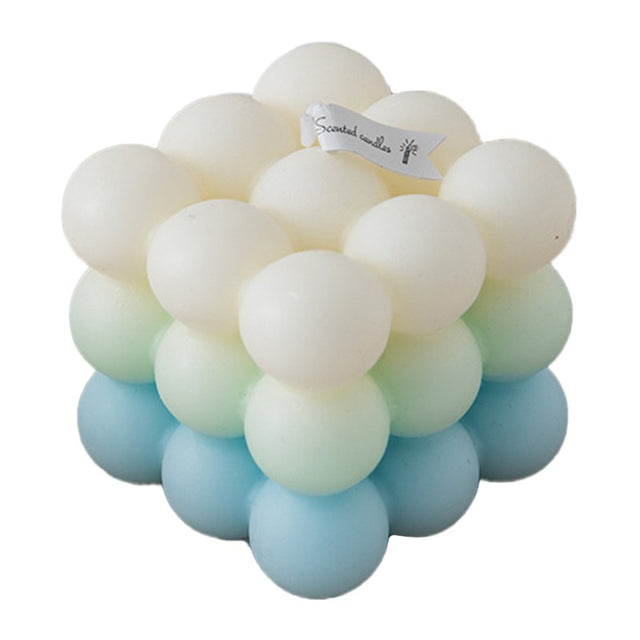 Ароматна свещ, кубичен модел, градиент в 3 бледи цвята, 6x6x6 см, морски аромат, светлосиньо