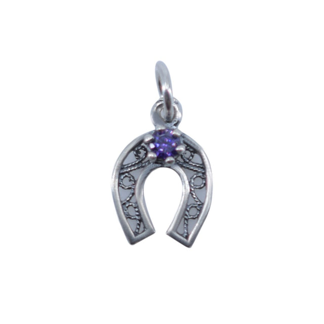 Сребърен филигранен медальон с форма на подкова и камък 925
