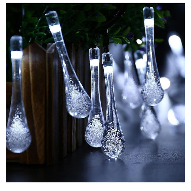 Коледна инсталация, тип „водна капка“, 20 светодиода, 5 метра, студено, слънчева енергия, сензор за светлина