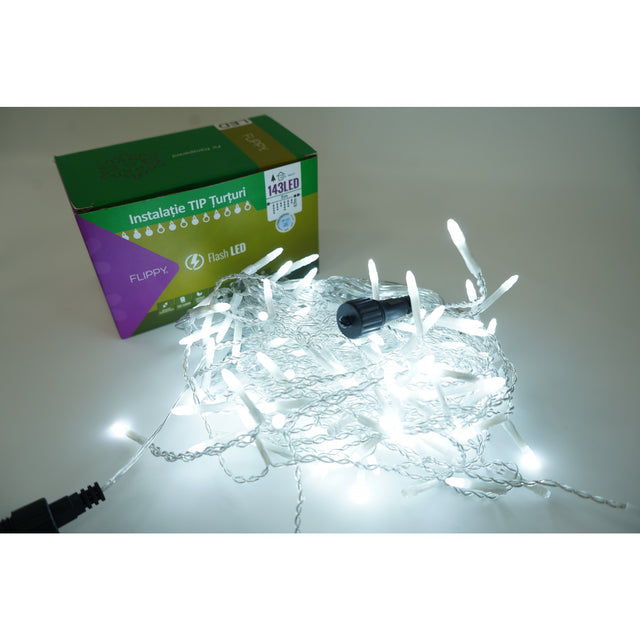 Монтаж на коледна елха, светещи ресни, секция 5 м, 143 светодиода, свързващи се, кабел, студено бяло