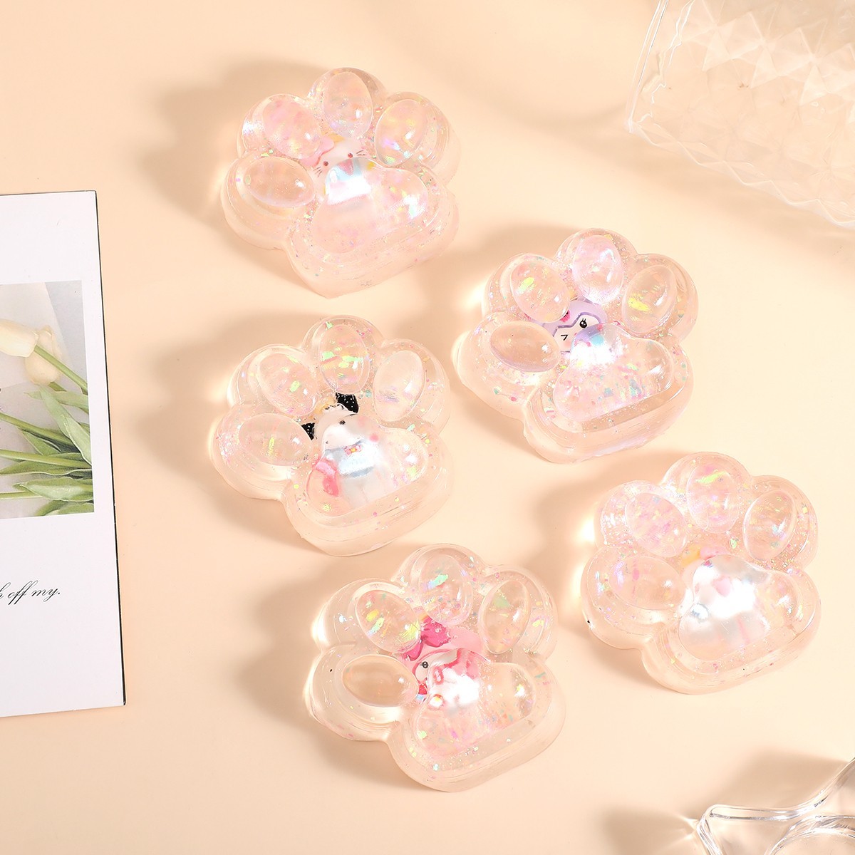 Jucarie Antistres Squishy, Flippy, cu Revenire Lenta, Labuta de Pisica Pufoasa, 7.5 cm, Ambalaj Transparent, Model Pinch Family, Multicolor
