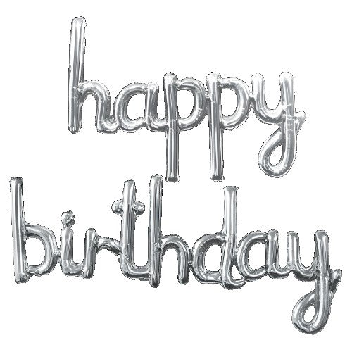 Комплект металически фолийни балони, мотив "Честит рожден ден", 45x85 см, 45x124 см, парти балони, индивидуална опаковка, включена сламка, напомпани с въздух или хелий, сребърни
