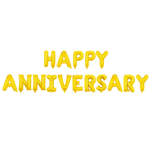Комплект металически фолийни балони, модел „Честита годишнина“, 40 см букви, парти балони, индивидуална опаковка, включена сламка, напомпани с въздух или хелий, златисти