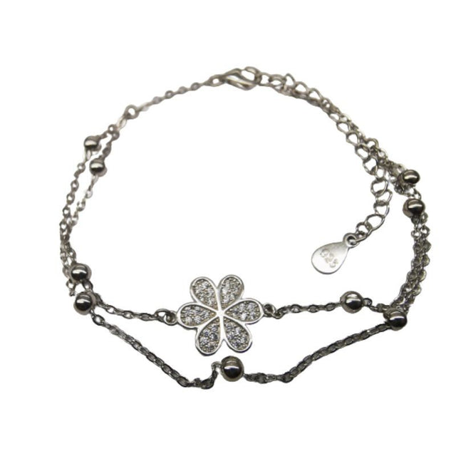 Двойна гривна, изработена от сребро 925, цвете и топчета