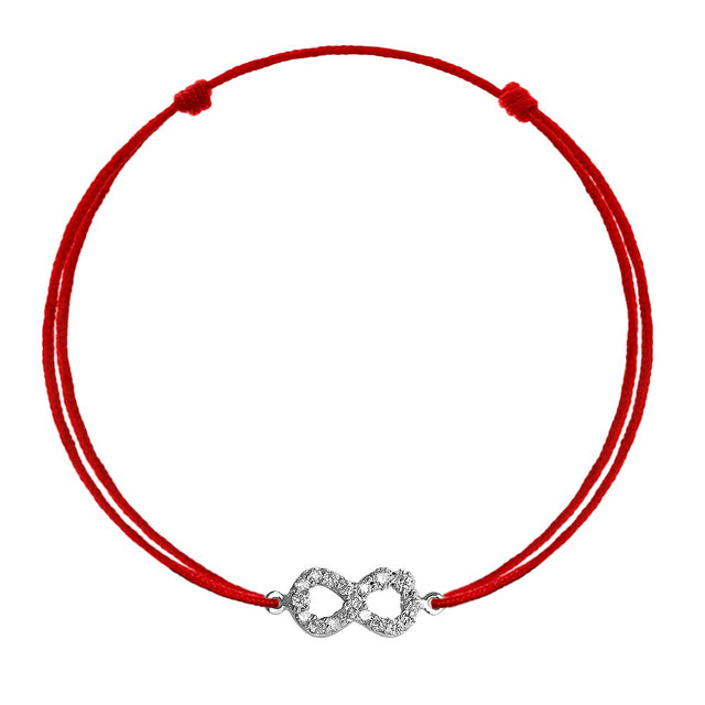Регулируема гривна от шнур, сребро 925, безкрайност с камъни E, сребро Jolie, 0.7 G