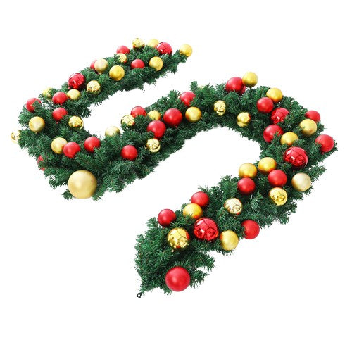 Гирляндата е изработена от PVC и е с дължина 270 сантиметра. Гирляндата е изработена от зелени листа и е украсена със златни и червени коледни топки.
