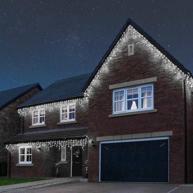 Коледна инсталация, 50 м, светодиоди, ресни, студено, светкавица, захранване, свързваемост, гумиран проводник, 220V - Бяло Задържано е и ще бъде изпратено веднага щом е отново налично.