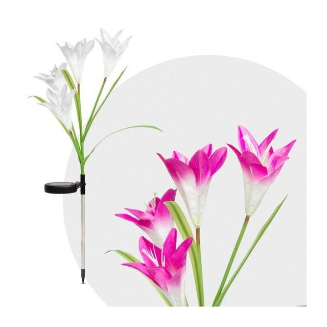 Соларната лампа Lily LED с 4 цвята, височина 80 см, е елегантна и практична градинска декорация, която осигурява цветна амбиентна светлина, работи със слънчева енергия и е водоустойчива (IP65).