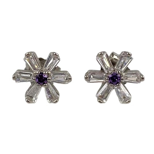 Cercei Argint 925 Floare cu Zirconii Mov se livreaza in cutie pentru bijuterii, impreuna cu certificatul de garantie.
