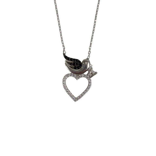 Colier Din Argint 925, Porumbel Si Inima Cu Zirconii 40 Cm
