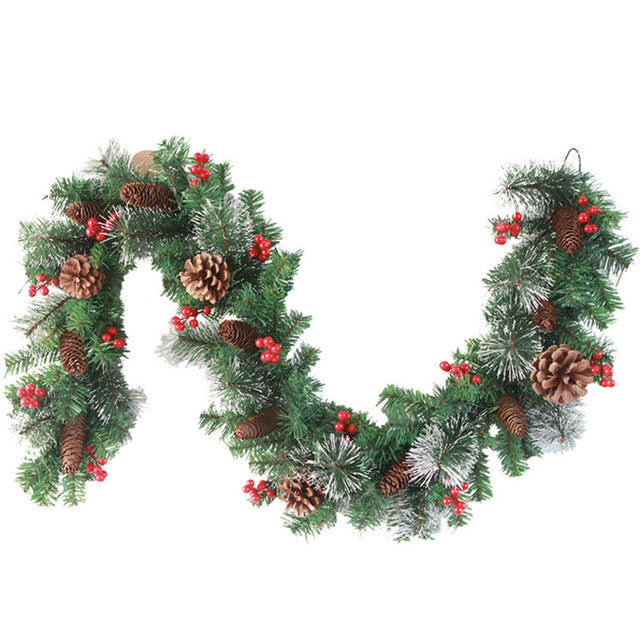 Ghirlanda De Craciun, Cu Merisoare Si Conuri, Din Brad Artificial, Cu Parti De Pin Inzapezit, 270 Cm
