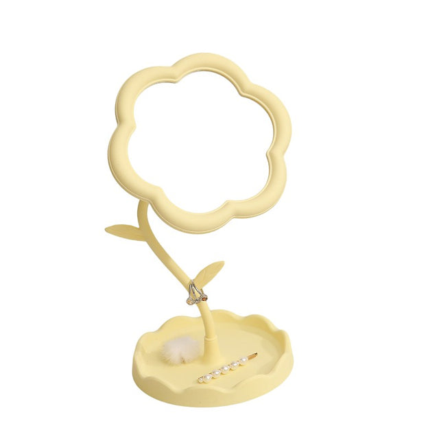 Îmbunătățiți-vă rutina de frumusețe cu oglinda de machiaj Flippy, un accesoriu elegant și practic pentru orice birou. Cu un design inspirat din frumusețea florilor, această oglindă de machiaj rotativă, în formă de floarea soarelui, aduce un strop de veselie și culoare în orice spațiu.