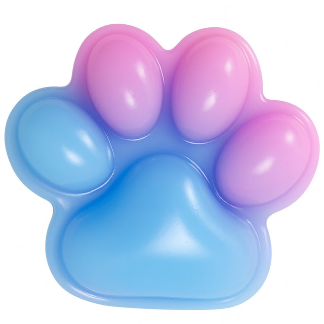 Jucarie Antistres Squishy, cu Revenire Lenta, Labuta de Pisica Pufoasa, 8.5 x 7.5 cm, Ambalaj Transparent, Albastru Roz