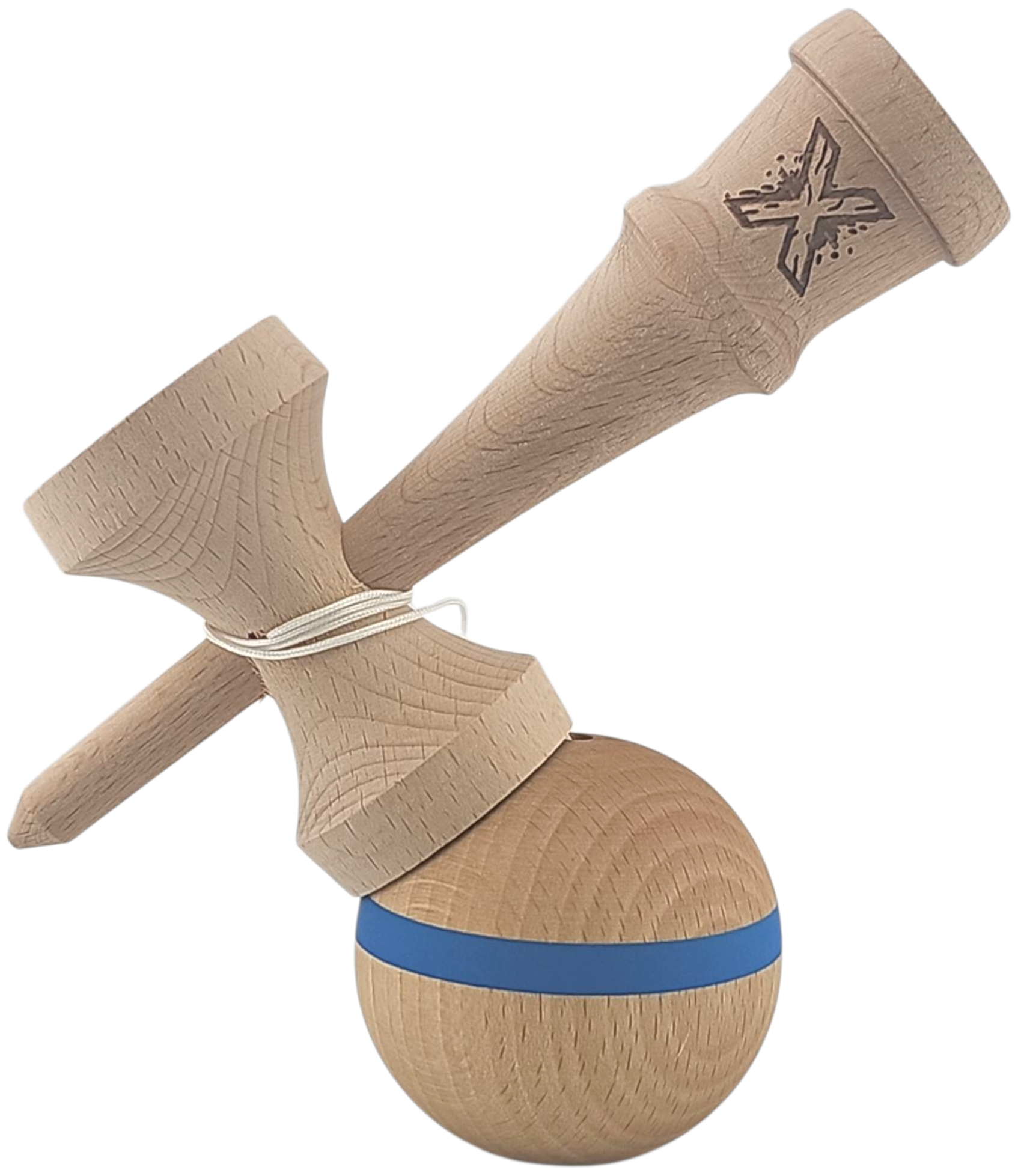 Kendama X Originala, Profesionala, Vivimall, din Lemn, 18 cm, Special, Model cu Dunga, Albastru