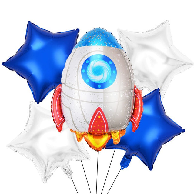 Set 5 Baloane Din Folie Metalizata Happy Birthday, Figurina, Stelute Albastre, Adeziv Si Pai Incluse, Alb